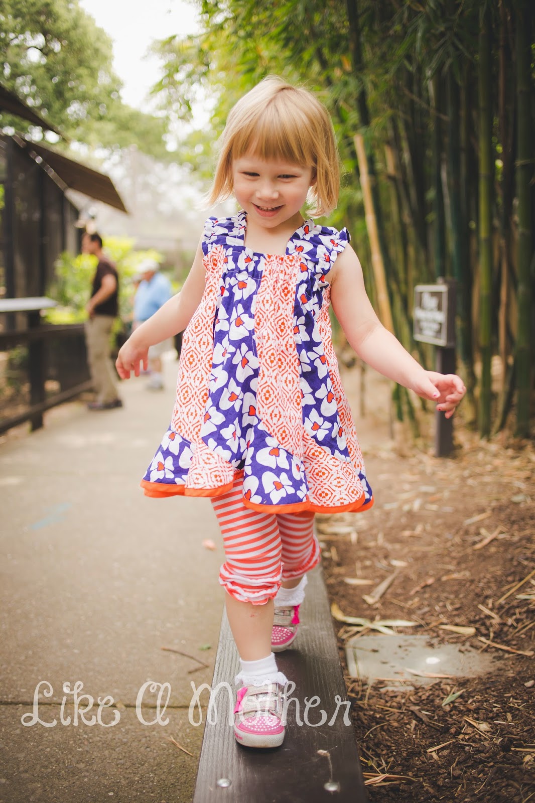 I love the casual comfort of this one and can already see it being worn to swimming practice and dance lessons. I cut the willows into capris and left off the ruffles for a more streamlined look, but the pattern includes full length pants with up to 3 ruffles.